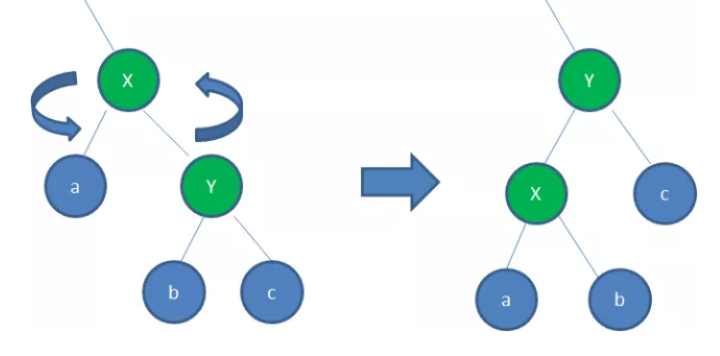 - 逆时针旋转,即父节点抢了右子节点的左儿子作为自己的右儿子,然后自己去认右子节点为爹。如图